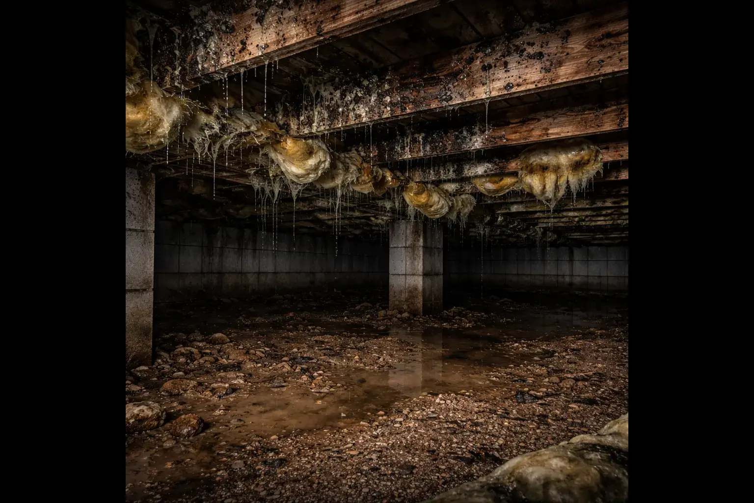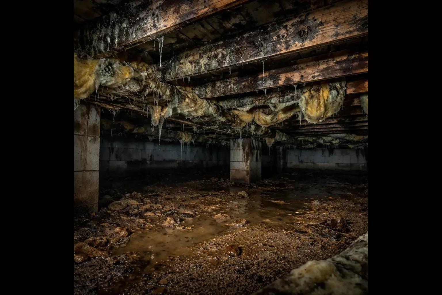 Repair damaged insulation, wood rot, and structural issues caused by long-term moisture exposure and poor crawl space conditions.